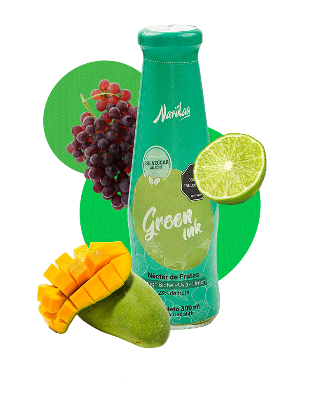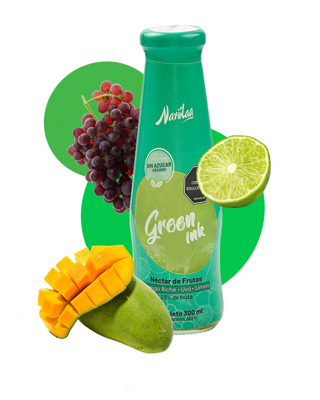 Green Ink es una mezcla refrescante y funcional que une la energía natural del mango, el poder depurativo del limón y los antioxidantes de la uva, dando como resultado un néctar ligero, vibrante y lleno de beneficios para el bienestar diario.